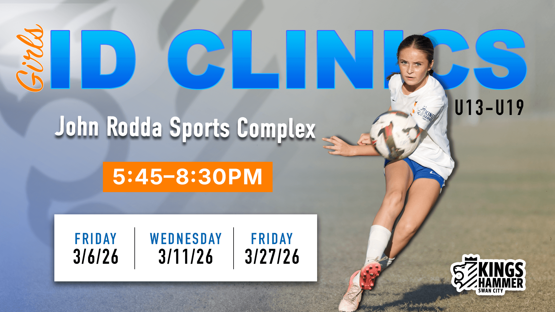 Ready to take your game to the next level? Kings Hammer Swan City is hosting Girls ID Clinics this March for players U13-U19 who are